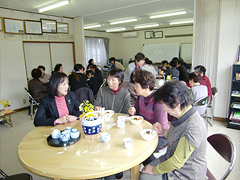 泉ヶ丘の住民がふれあい、語り合う場として、団地の集会所で、毎月第2日曜日の午前中に開設しています。70才以上の方が350名を越え、高齢化が進む団地での取り組みです。スタッフも、訪れる方々も、みんな元気に、明るい声がいっぱいです。こんな取り組みが、今、各地域に広がってきていますね。