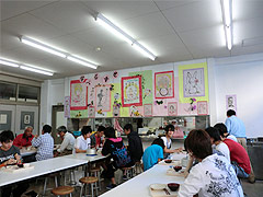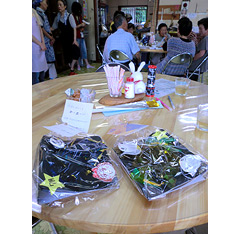 この日も、アコーディオンの生演奏の流れる中、高齢者の皆さんが丸いテーブルを囲んで談笑していました。高田短大の学生や千里ヶ丘小学校の子どもたちのにこやかな対応や、心のこもった七夕プレゼントに感激し、閉店後の反省会にも参加させていただきました。スタッフがそれぞれの思いを出し合う、ステキな反省会でした。ここでは、小学生の子どもたちも対等な地域づくりの担い手です。