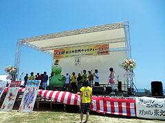 香良洲の若い皆さんが中心となって実行委員会を結成して主催し、津市や新聞社、放送局等が後援して、チャリティライブが実現しました。太鼓、尺八、バンド演奏、歌、マジック等で、ステージは熱く盛り上がり、潮風に吹かれて食べる焼きそば、貝焼きは最高でした。でも、誰よりも熱く、最高だったのは、実行委員会の皆さんの復興支援への思いでした。