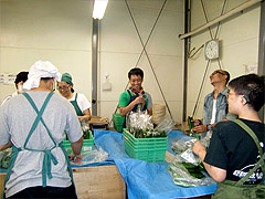 京都市下京区にあるキング物流に視察に行きました。約20人の障がい者の皆さんが、青果のパックづめ作業などの仕事を、本当に手際よくこなしていました。