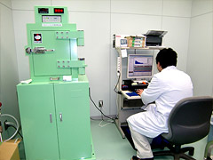 そこで、まずは、放射性物質をどのように測定分析するのかを調べるため、(財)三重県環境保全事業団(河芸町)を訪ねました。ゲルマニウム半導体検出器によって、飲料水や牛乳、農産物、海産物等に含まれる放射性物質を測定しています。牛肉や堆肥など公的機関からの検査依頼だけでなく、民間からの検査依頼にも対応しています。