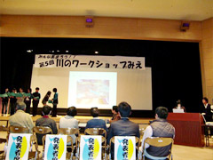 川にかかわる調査や研究、活動をしている仲間が集まり、発表します。今年は、津市の片田小学校と一身田中学校の子どもたちも参加していました。