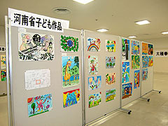 津市高茶屋小学校、鎮江市宝搭路小学校などの子どもの作品展示交流や河南省緑化事業の紹介などがあり、ふれあいコーナーの中国茶道実演・やさしい中国語会話などでは、中国人留学生との交流もあり、多くの市民の皆さんが楽しんでいただきました。