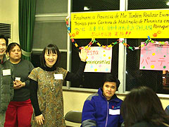 宮城県国際化協会の大村昌枝さんによる講演では、東日本大震災における外国人の問題をとりあげ、助かった命の大部分は近所の人の助け合いによるものであったこと、外国人同士の日頃のネットワークが重要であったこと、日本語教室が情報共有の拠点になっていったこと、母国語による「ふりかえりの会」によって心のケアに取り組んだこと等が、今後の課題も含め詳しく語られました。