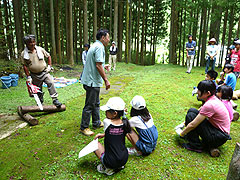 今年の会場は、美杉町の「道の駅」周辺の森で、美杉の木材を使って、子どもたちが五感を充分に働かせて創造的な造形物をつくり、素晴らしい夏休みの一日を過ごしていました。秋には地域の文化祭で作品展示される予定です。