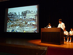 子どもたちからは、「ふつうの生活を送れることの幸せ」「私たちの体験が三重の皆さんの命を守ることにつながりますように」「私たちが中心になって防災の輪を広げたい」等、体験に基づいた確かなメッセージが力強く発信されました。鈴木知事のあいさつ「中学生の力を防災に!」がとても印象的でした。