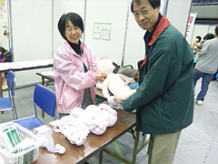 (社)三重県看護協会が妊婦体験服試着や胎児模型展示をしていました。