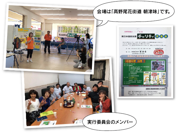 7月に津市高野尾町「朝津味」で開催した東日本復興支援交流チャリティーイベントで出会った、松阪市の「ふくみえ」チームと、津市「人と絆」チームのコラボで実現しました。