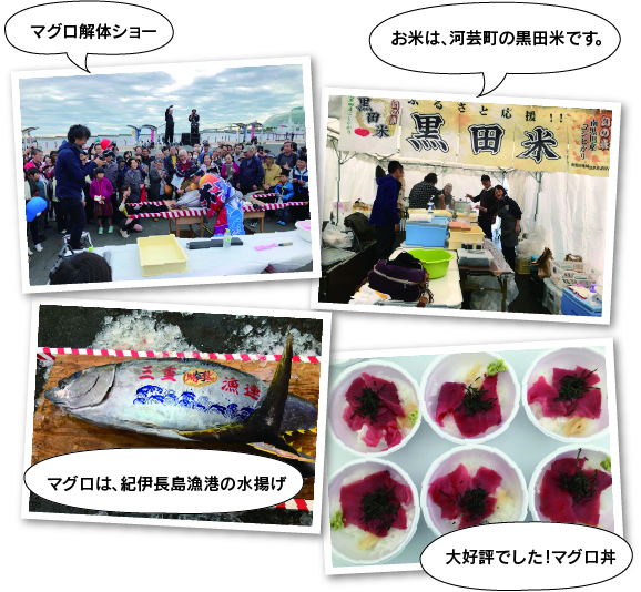 マグロの解体ショー、マグロ丼のふるまい、チャリティライブなどなど!