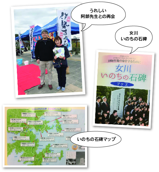 その後の阿部先生をはじめとする女川第一中の取り組みは、子どもたちが力を発揮し、1000年後の命を守るために「女川 いのちの石碑」建立に繋がっていきました。2020年、最後の21基目が完成します。この取り組みは、道徳の教科書に、千年先のふるさとへ のタイトルで掲載されています。